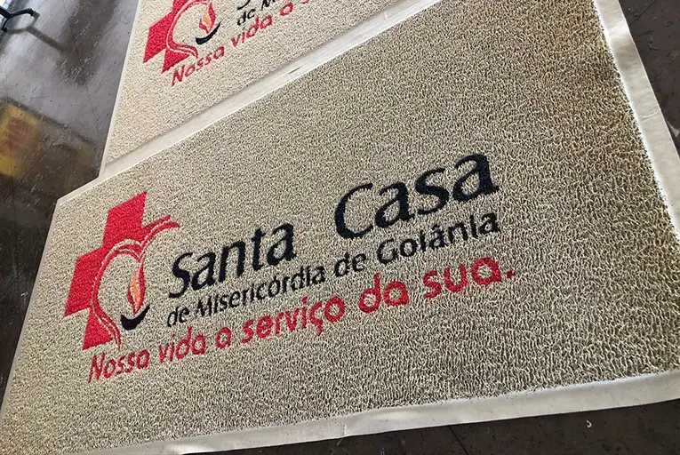 Tapetes feitos sob medida, com o logo da sua empresa fiel ao design original. Cores, formatos e materiais escolhidos por você.